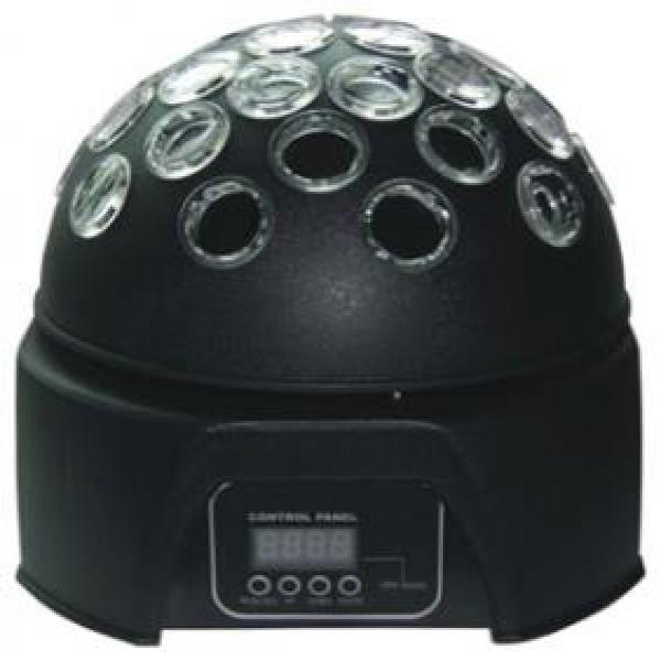 简要说明技术参数 电压: AC110V/220V 50-60Hz 功率: 17/10W 灯泡:3W LEDs 2 DMX通道:调光/频闪;旋转:顺时针和反顺时针加上转速 2个操作模式:主/从,声控,自动模式 ( 8个内置程序) ; 尺寸(长x宽x高) : 210x210x179mm 重量: 1.8kg